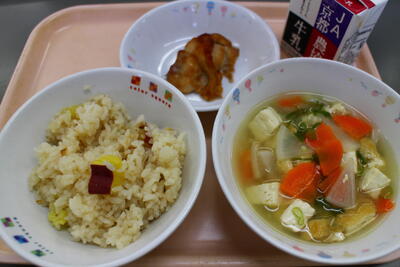甘いさつまいもが入ったごはんでした。この時期だけに登場する混ぜご飯です。