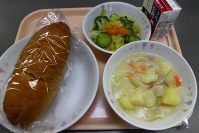 黒糖パン 牛乳 豆乳シチュー フレンチサラダ