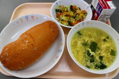 シュガーあげパン 牛乳 野菜ソテー たまごスープ