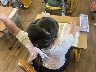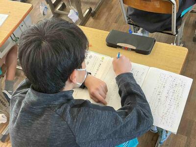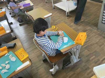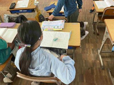 全体で国語の文章の読み取りをしたり、図書室に出かけて、本に親しんだり、ドリルやノートを使って漢字や計算に取り組んだり。みんな落ち着いた様子で一生懸命取り組んでいます。