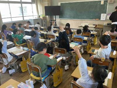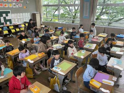 今日の5時間目は授業参観、参観日です。学校にも慣れてがんばっている1年生ですが、今日はいつもにも増してはり切っている様子です。初めての参観日、しっかり学ぶ姿を見てもらいましょう。
