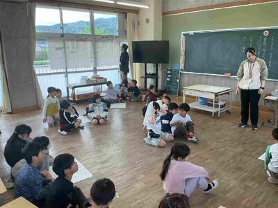 こねてのばしてかためて、なにつくろう?粘土に取り組みます。こねたり、のばしたり、かためたりする動きをねんどたいそうとして学んでから、自分たちの思い思いのものを形にしていきます。たいへん楽しそうに取り組んでいました。