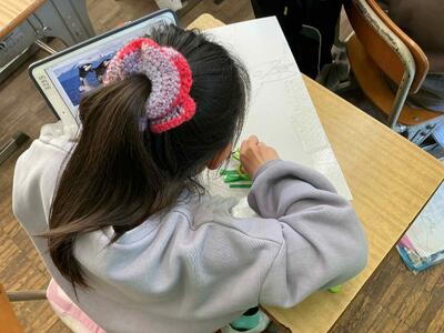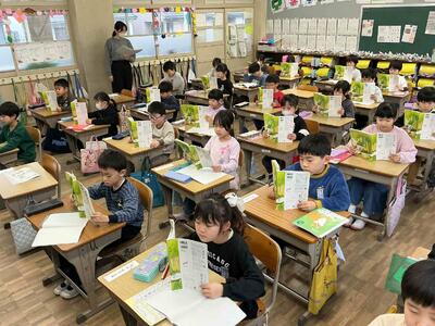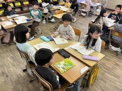 よい姿勢で教科書をしっかり立てて持って、音読をがんばります。まずは、つまらず読めるようにしますが、なかなかスムーズに読めています。練習を重ねてよりよく読みます!
