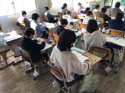 国語の学習では「聞く・話す・読む・書く」が重要な活動です。しっかり書いて、話した授業の終末は、先生が学習のまとめをしています。その場面では、よく「聞いて」います。