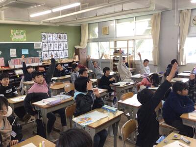 「はい」と気持ちよい声が響き、よく伸びる手が目立ちます。先生のように黒板の前に出て、指し示しながら説明をします。みんなによくわかるように説明できたでしょうか。