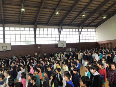 人権旬間が始まります。そのスタートに「人権はじめの集会」を行いました。「僕の弟は機械の鼻」という動画を見た後に、「とくべつなひとり」という曲を全校みんなで歌いました。今回の取組期間にいつも以上に友達を思うことや人を大切にするということについてじっくり考えて、中筋小学校の仲の良さ、つながりをさらに深めてほしいと思います。
