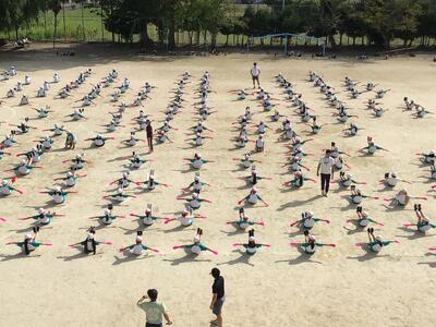 取組は進む! 9/30 (5・6年生) 投稿: 学校管理者 (09/30) 高学年の団体演技の取組は進みます。やってみては修正し、そしてまたやってみて。先生の指導のもと、真剣に取り組む子どもたちです。全体が揃うとやはり美しい。