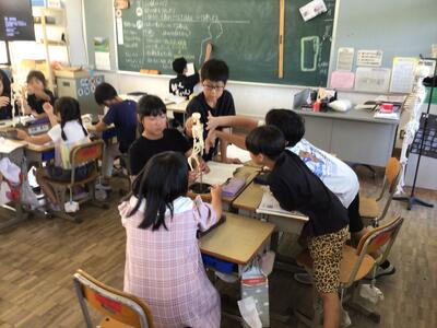人体には不思議がいっぱいです。自分自身の体ですが分からないことはたくさんあります。子どもたちは、人間の体は骨によって支えられていることもはっきりとはわかっていないかもしれません。人体骨格標本(子どもたちはガイコツって言ってますが)によってその様子を学んでいます。理科室にはこんな一見不気味な教具もあるのです。子どもたちは興味津々です。ちょっぴり怖いので今晩の夢には出てきてほしくありませんね。