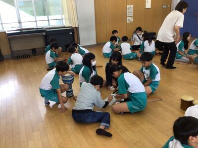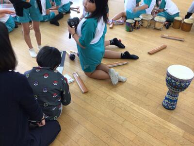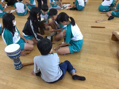 楽器で楽しもう 10/21 (4年生・支援学校児童) 投稿: 学校管理者 (10:57) 本校は、インクルーシブな教育活動を進めています。この日も支援学校児童が本校に来て、4年生と音楽での共同学習を行いました。教科の学習を通じた共同学習の充実を目指しています。様々な楽器を使ってその音色を共に楽しみました。