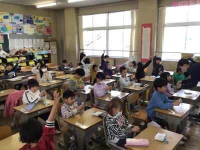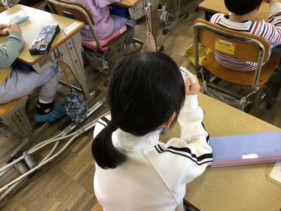 ひたすらに… 11/18 (1年生) 投稿: 学校管理者 (11/18) リングで束ねた計算カードを繰って、ひたすらに計算式を唱え、答えをつぶやいていきます。繰り返し繰り返し行います。こうして頭で考えるが早いか、唱えるが早いか、とにかくひたすらに繰り返し計算に慣れていきます。入門期ではこうした活動で、頭のトレーニングをしていくことは大切ですね。