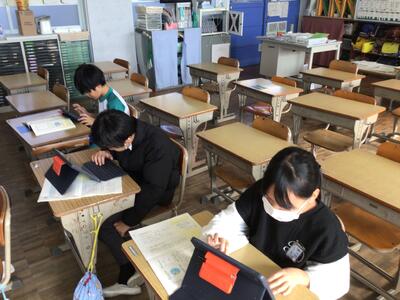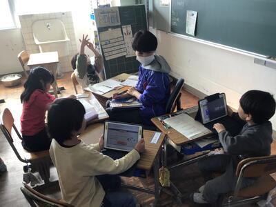 自分に応じて 11/20 (たけのこ学級) 投稿: 学校管理者 (11/20) それぞれの児童がタブレットを使ったり、教科書とノートを使ったり、先生から教えてもらったりと自分に応じて学びを進めています。少人数のよさを活かして、それぞれの学びを進めていきます。
