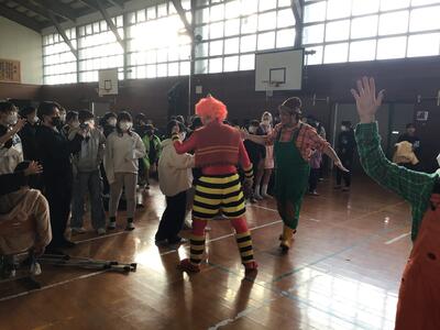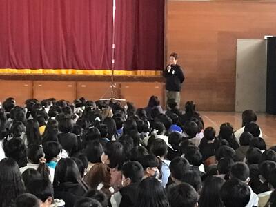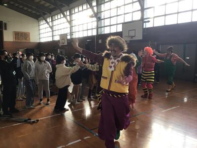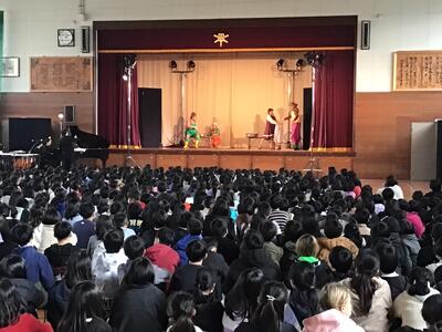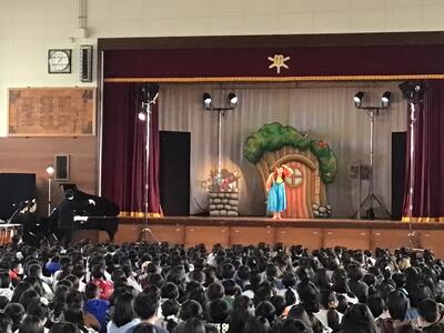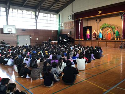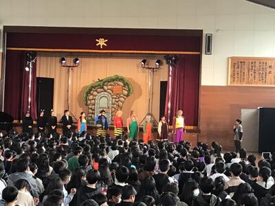 文化庁による学校巡回公演事業で、びわ湖ホール声楽アンサンブルの皆さんにお越しいただき、本物のオペラ鑑賞会を本校体育館で行いました。午前中から準備いただき、体育館が立派なオペラ会場に生まれ変わりました。