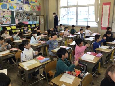 カラカラカラ 12/3 (1年生) 投稿: 学校管理者 (12:16) 「カラカラカラ」と声がします。教室ではみんなが手を上げて何かを回す動作をしています。糸車を回す動作を真似ているようです。こうして実際に動作をしてみて、その様子を理解しようと学んでいます。
