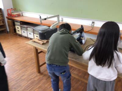 いい感じに 12/11 (5年生) 投稿: 学校管理者 (12/11) ぼくのわたしの伝言板づくりに取り組んでいる5年生です。電動糸のこぎりで板を切り分けたら、デザインに応じて色を付けて、ホワイトボード部分も取り付けてというふうに完成に向かいます。いい感じに仕上がってきていますね。