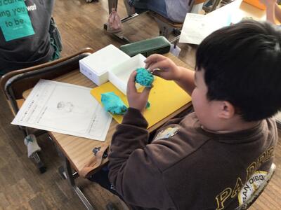 おいしい顔を 12/19 (2年生) 投稿: 学校管理者 (10:47) 好きな食べ物を食べて、おいしい~という顔を粘土で表現します。まずはイメージをイラストに表して、それを粘土で表そうとしています。ねじったり、のばしたり、固めたり、くっつけたり・・・。細工の仕方を工夫します。