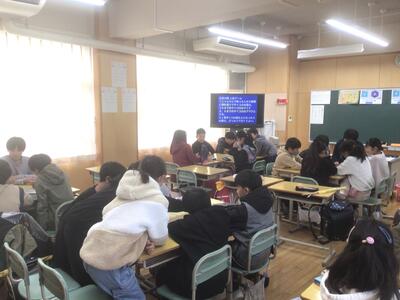 はじめの一歩 1/14 (6年生) 投稿: 学校管理者 (14:55) 今日は、6年生にとって中学生への「はじめの一歩」とでも言うべき、城南中学校体験入学の日です。体育館で中学校の生徒の皆さんから、中学校生活について説明を聞きました。4月からの生活に思いを馳せたことでしょう。その後は教室に移動して、中学校の先生からの授業を受けました。初めの方こそ緊張気味でしたが、すぐに慣れて、とても楽しそうに取り組んでいました。