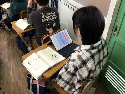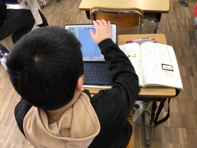 上手に使い分けましょう 1/15 (6年生) 投稿: 学校管理者 (09:43) 国語の学習です。言葉に関わる学習ですが、ノートに書いている児童もいれば、タブレットに打ち込んでいる児童もいるようです。今は、授業にタブレットは欠かせません。タブレットは、鉛筆や消しゴム、ノートのように文房具の一つというふうに扱っています。学習の内容や目的などに応じて上手に使い分けましょう。