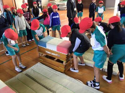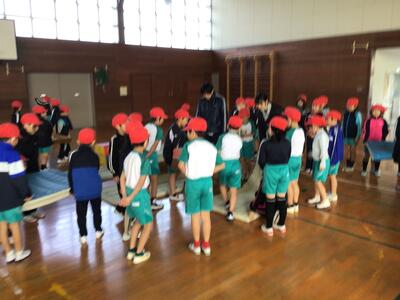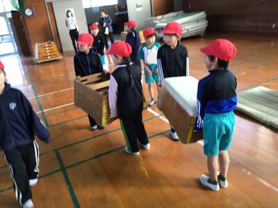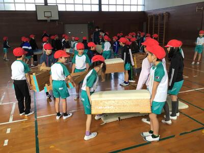 体育では… 2/2 (2年生) 投稿: 学校管理者 (10:25) 体育では、体を動かして活動することが主ですが、その前に準備、活動が終われば片付けも大切な学習です。自分たちが活動しやすいように、自分たちの活動内容に合わせて場所をつくり出すことも学びの一つです。マットや跳び箱を力を合わせて運び、活動するための場づくりを行います。
