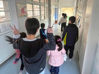 令和8年度入学の新1年生が小学校に来てくれました。5年生は、新1年生に安心してもらおう、喜んでもらおうと校内スタンプラリーを計画しました。可愛い新1年生に声をかけながら、リードする姿が校内至るところで見られました。新1年生の皆さんも話をよく聞いたり、お兄さんお姉さんによくついていったりするかしこい姿をたくさん見せてくれました。保護者の皆さんも多数ご参加いただき、熱心に説明をお聞きいただきました。4月からのご入学を心よりお待ちしております。