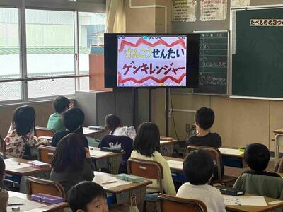 3つのなかま 2/3 (1年生) 投稿: 学校管理者 (15:04) 3つのなかまといっても、これは友達同士ではなくて、「たべものの3つのなかまをしろう」という勉強でした。給食週間の食育特別授業です。「けんこうせんたいゲンキレンジャー」の紙芝居を見ながら、食べ物の赤・黄・緑の仲間分けについて学びました。給食にはこの3つのなかまがバランスよく入っていますね。