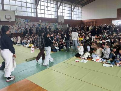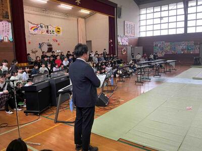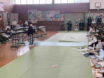 かかわり・うけとめ・つながり ~心と心の通い合い 6年生を送る会~⑫ 2/20 投稿: 学校管理者 (02/20) 児童と教頭先生から終わりの挨拶がありました。ハツラツとした声で工夫した児童の挨拶でした。最後は、全校児童が作る花道を通って、会場を後にする6年生でした。こうして6年生を送る会を終えました。