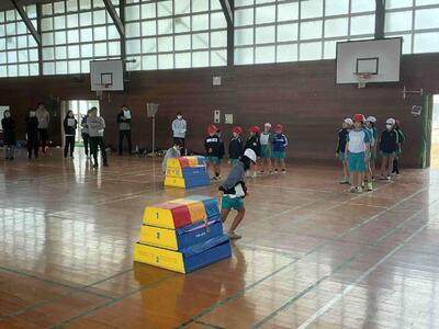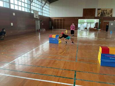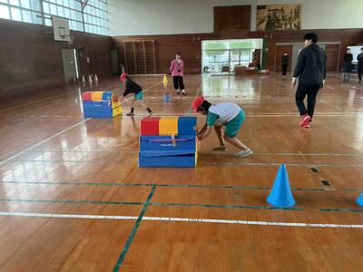 たくさんの先生に見守られて② 3/5 (たけのこ学級) 投稿: 学校管理者 (09:19) 体育館でも活動しました。押したり引いたりして将来の自立に必要なたくましい身体を育てます。体幹を強くすることで心身の健やかな成長に繋がったり、脳の活発な働きを促したりします。体育館でも見守られながらがんばりました。