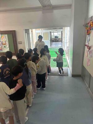 はじめは基本から 4/10 (1年生) 投稿: 学校管理者 (12:06) どんなことも初めは基本から。特に入学したての1年生には、基本を丁寧に指導します。廊下の並び方、歩き方、トイレの使い方など、まずは基本をしっかり身に付けられるようにしていきます。