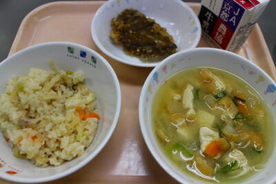 11月25日 給食 投稿: 学校管理者 (16:28) 【今日のこんだて】 大根ごはん 牛乳 アカガレイのからあげ たまねぎのみそ汁 給食にアカガレイが出るのは初めてです。太い骨がついたままの魚ですが、おはしを使って骨をよけてきれいに食べていました。